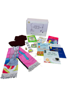 فالطفل يرى الرسومات الملونة و يفتح الثنيات الموجودة على الصفحات و يسمع صوت الحرف عند تسمية رسوم الحبوانات و الأشياء بالاضافة إلى الأسهم المطبوعة على الأحرف ليتحسسها الطفل و يتعلم كتابة الاحرف بالإتجاه الصحيح