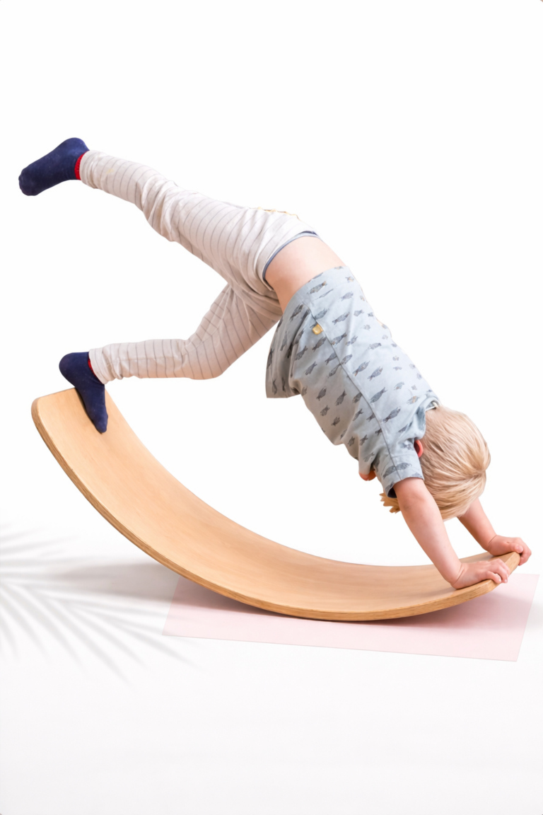 لوح التوازن يعطيه بديلا حقيقيا: حركة، توازن، خيال، وتجربة لعب تتغير كل مرة.