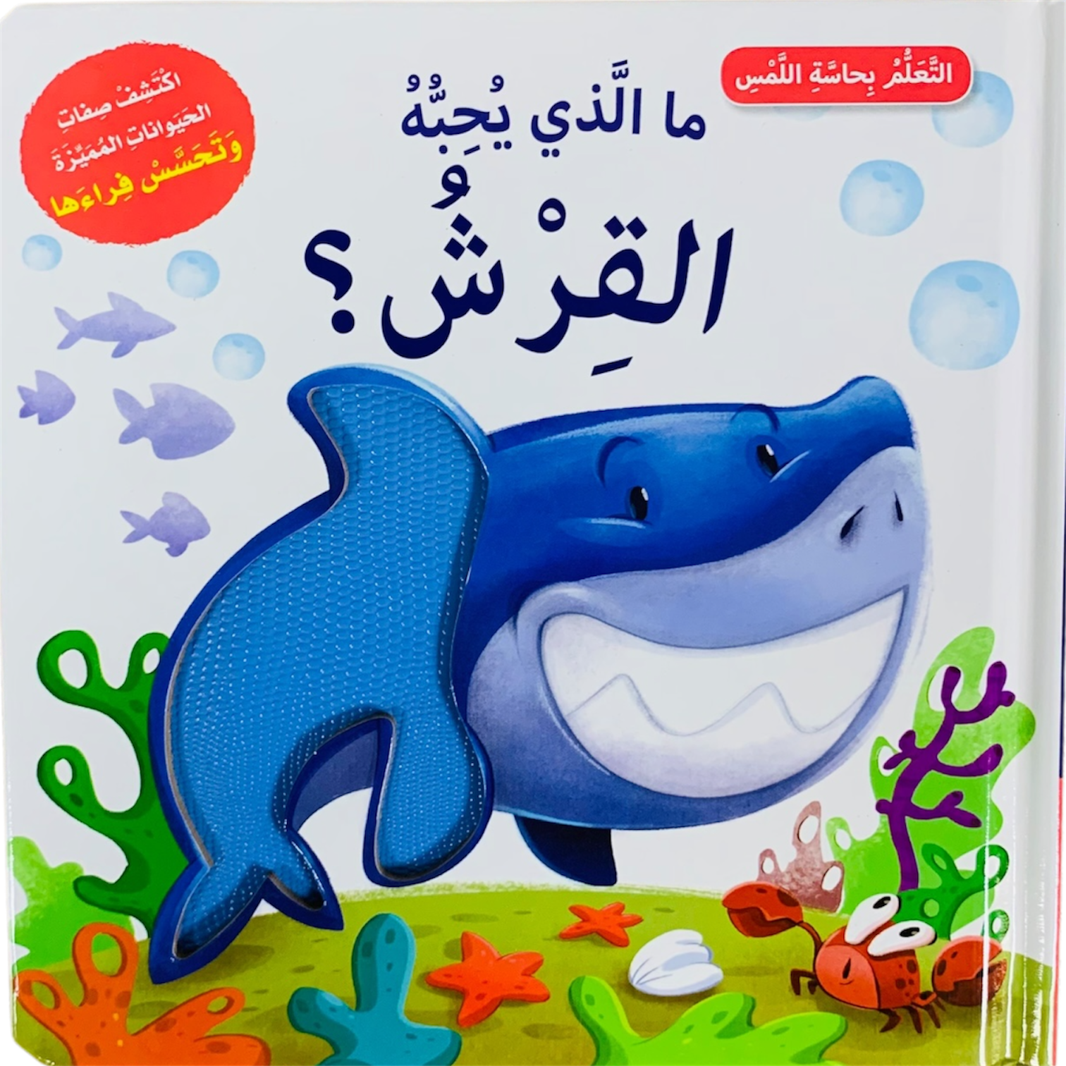 تَعَرَّفْ عَلَى الأَشْياءِ المُفَضَّلَةِ الَّتي يُحِبُّهُا القِرْشُ وَتَحَسَّسْ جِلْدَهُ مِنْ خِلالِ قِصَّةِ هذا الكِتابِ الرَّائِعَةِ المَحْشُوَّةِ بِالرُّسُومِ الجَذَّابَةِ وَالصِّفاتِ المُمَيِّزَةِ لِلْغايَةِ.