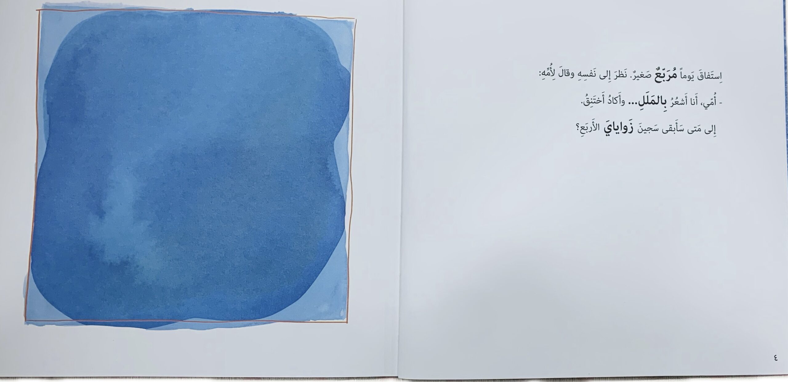 هي قصة «مربَّع» ليس بالمعنى الهندسي، فالمربع شخصية لها أحلامها وطموحها التي يسعى لتحقيقها بالرغم من إمكاناته المحدودة بالزوايا الأربع، فبالمثابرة والجد