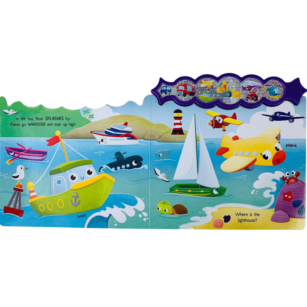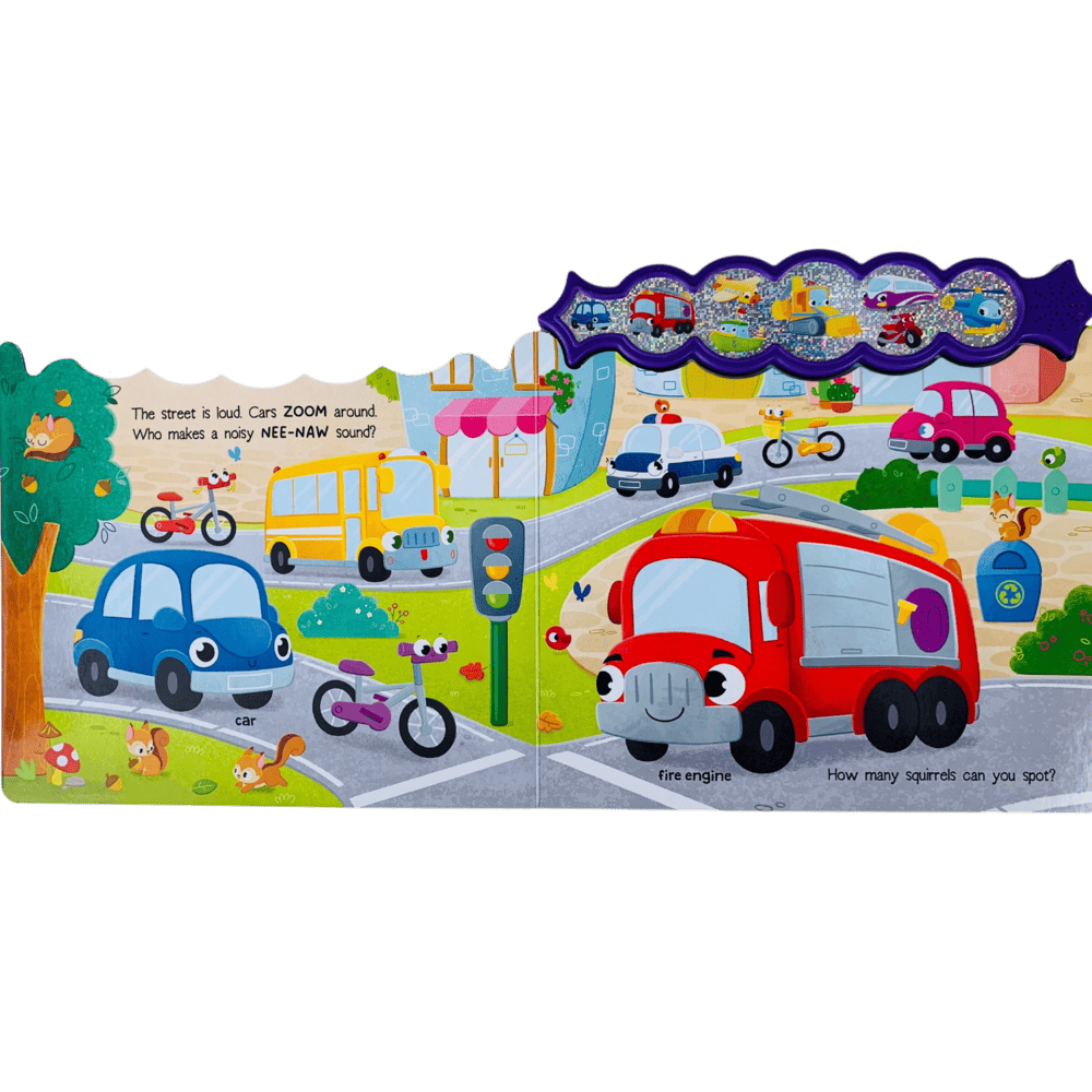 Press the buttons to discover 8 exciting vehicle sounds, from VROOM to NEE-NAW!