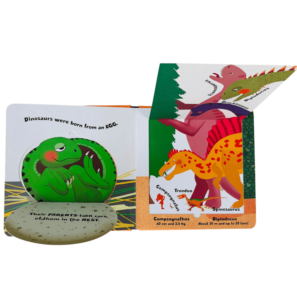 هل تحب الديناصورات؟ تصفح الصفحات لتتعرف عليها أكثر واكتشف المفاجآت المخفية خلف اللوحات.